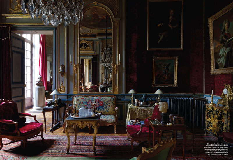 “Crossing the front door of Hôtel de Gesvres, the Parisian residence of Joseph Achkar and Michel Charrière, is always a pleasure and a privilege. The history of Gesvres, like that of other old houses, is rich and surprising and, after a long period of dormancy, has reentered a state of grace. Having been given the chance of once again producing a fashion story there, we did not want to miss the opportunity of making a separate profile of its sumptuous and sensual interiors as well. We invited Francis Hammond to do the photos and the result is the very atmospheric set of pictures that unfold over the next pages.”